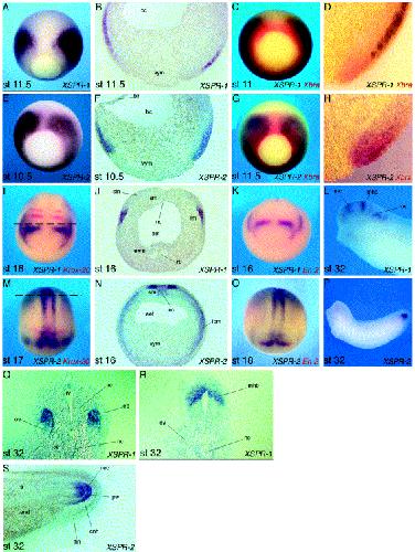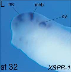 XSPR-1 and XSPR-2, novel Sp1 related zinc finger containing genes, are dynamically expressed during Xenopus embryogenesis. , Ossipova O, Stick R , Pieler T ., Mech Dev. July 1, 2002; 115 (1-2): 117-22.