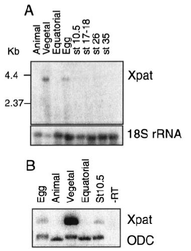 Xpat, a gene expressed specifically in germ plasm and primordial germ cells of Xenopus laevis. , Hudson C, Woodland HR ., Mech Dev. May 1, 1998; 73 (2): 159-68.