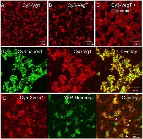 Localisation of RNAs into the germ plasm of vitellogenic Xenopus oocytes. , Nijjar S, Woodland HR ., PLoS One. January 1, 2013; 8 (4): e61847.