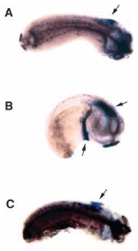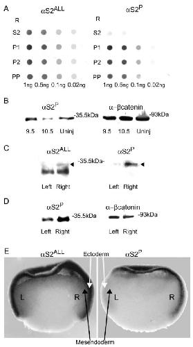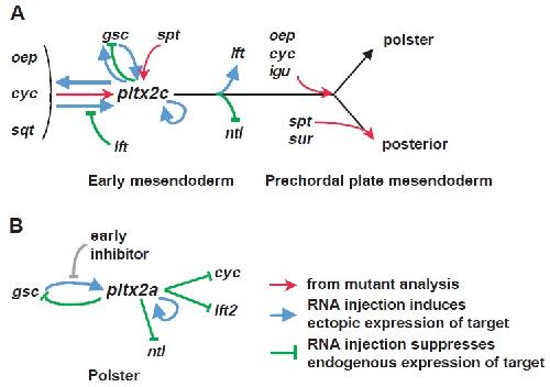 Mesendoderm and left- right brain, heart and gut development are differentially regulated by pitx2 isoforms. , Essner JJ, Branford WW , Zhang J, Yost HJ ., Development. March 1, 2000; 127 (5): 1081-93.