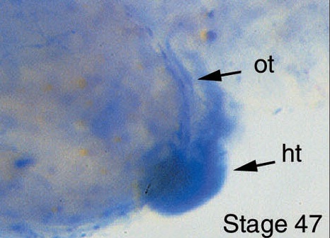 Vertebrate model systems in the study of early heart development: Xenopus and zebrafish. , Lohr JL, Yost HJ ., Am J Med Genet. January 1, 2000; 97 (4): 248-57.