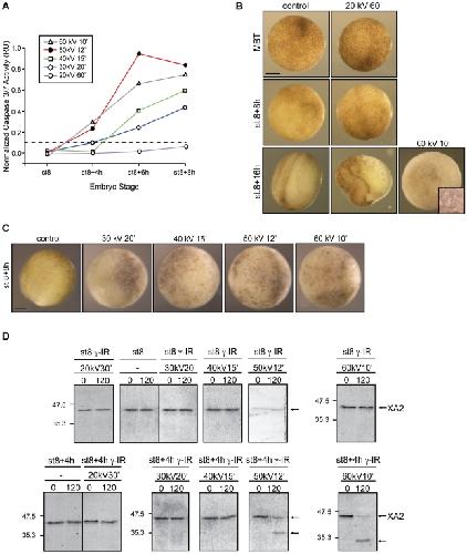 Shorter exposures to harder X-rays trigger early apoptotic events in Xenopus laevis embryos. , Dong J, Mury SP, Drahos KE, Moscovitch M, Zia RK, Finkielstein CV ., PLoS One. January 21, 2010; 5 (1): e8970.