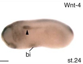 Essential function of Wnt-4 for tubulogenesis in the Xenopus pronephric kidney. , Saulnier DM, Ghanbari H, Brändli AW ., Dev Biol. August 1, 2002; 248 (1): 13-28.