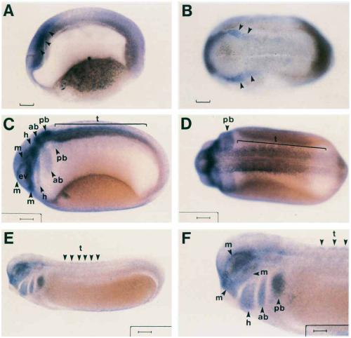 Comparative analysis of embryonic gene expression defines potential interaction sites for Xenopus EphB4 receptors with ephrin-B ligands. , Helbling PM, Saulnier DM, Robinson V, Christiansen JH, Wilkinson DG , Brändli AW ., Dev Dyn. December 1, 1999; 216 (4-5): 361-73.