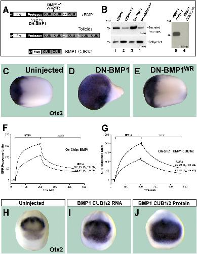 Enzymatic regulation of pattern: BMP4 binds CUB domains of Tolloids and inhibits proteinase activity. , Lee HX , Mendes FA, Plouhinec JL, De Robertis EM ., Genes Dev. November 1, 2009; 23 (21): 2551-62.