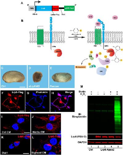 Wnt-inducible Lrp6- APEX2 interacting proteins identify ESCRT machinery and Trk-fused gene as components of the Wnt signaling pathway. , Colozza G , Jami-Alahmadi Y, Dsouza A, Tejeda-Muñoz N, Albrecht LV, Sosa EA, Wohlschlegel JA, De Robertis EM ., Sci Rep. December 9, 2020; 10 (1): 21555.