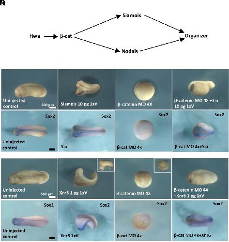 Spemann organizer transcriptome induction by early beta-catenin, Wnt, Nodal, and Siamois signals in Xenopus laevis. , Ding Y , Ploper D, Sosa EA, Colozza G , Moriyama Y , Benitez MD, Zhang K, Merkurjev D, De Robertis EM ., Proc Natl Acad Sci U S A. April 11, 2017; 114 (15): E3081-E3090.