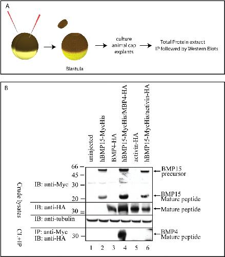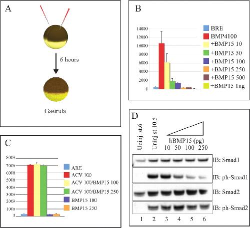 Bone morphogenetic protein 15 ( BMP15) acts as a BMP and Wnt inhibitor during early embryogenesis. , Di Pasquale E, Brivanlou AH ., J Biol Chem. September 18, 2009; 284 (38): 26127-36.