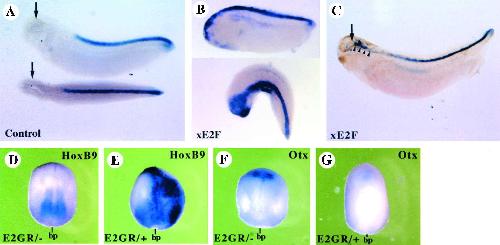 Xenopus embryonic E2F is required for the formation of ventral and posterior cell fates during early embryogenesis. , Suzuki A , Hemmati-Brivanlou A ., Mol Cell. February 1, 2000; 5 (2): 217-29.