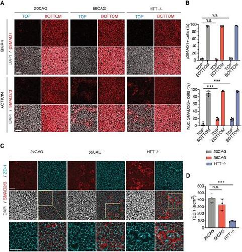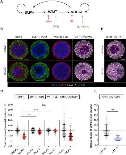 Huntingtin CAG expansion impairs germ layer patterning in synthetic human 2D gastruloids through polarity defects. , Galgoczi S, Ruzo A, Markopoulos C, Yoney A, Phan-Everson T, Li S, Haremaki T , Metzger JJ, Etoc F, Brivanlou AH ., Development. October 1, 2021; 148 (19):