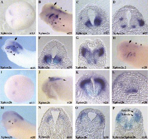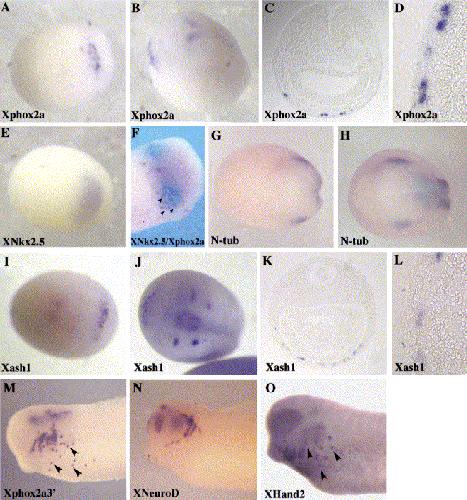 Characterization of Xenopus Phox2a and Phox2b defines expression domains within the embryonic nervous system and early heart field. , Talikka M, Stefani G, Brivanlou AH , Zimmerman K., Gene Expr Patterns. September 1, 2004; 4 (5): 601-7.