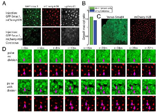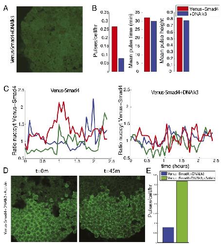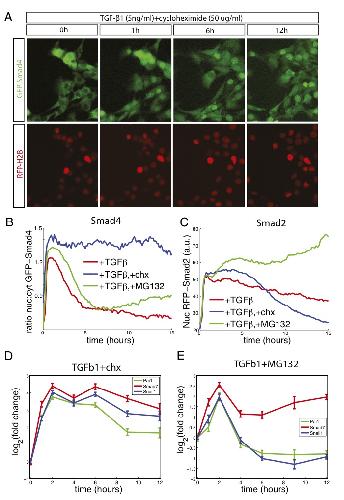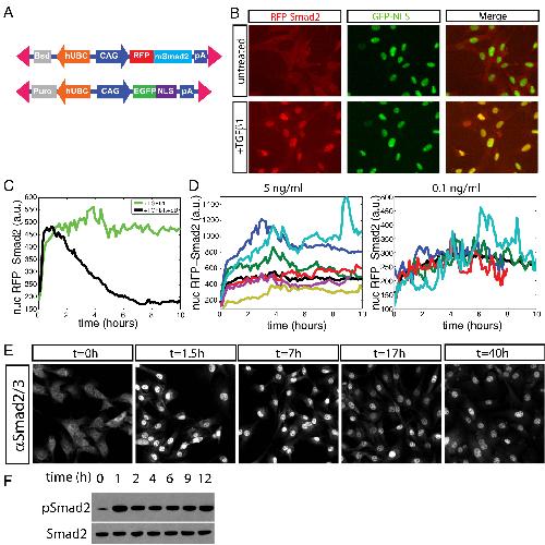 Dynamics of TGF-β signaling reveal adaptive and pulsatile behaviors reflected in the nuclear localization of transcription factor Smad4. , Warmflash A, Zhang Q, Sorre B, Vonica A , Siggia ED, Brivanlou AH ., Proc Natl Acad Sci U S A. June 10, 2012; 109 (28): E1947-56.