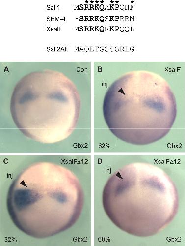 A phosphomimetic mutation in the Sall1 repression motif disrupts recruitment of the nucleosome remodeling and deacetylase complex and repression of Gbx2. , Lauberth SM, Bilyeu AC, Firulli BA, Kroll KL , Rauchman M ., J Biol Chem. November 30, 2007; 282 (48): 34858-68.