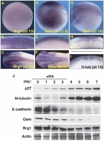 Geminin regulates neuronal differentiation by antagonizing Brg1 activity. , Seo S, Herr A, Lim JW, Richardson GA, Richardson H, Kroll KL ., Genes Dev. July 15, 2005; 19 (14): 1723-34.