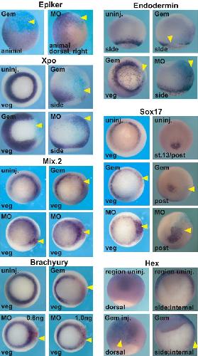 Geminin, a neuralizing molecule that demarcates the future neural plate at the onset of gastrulation. , Kroll KL , Salic AN, Evans LM, Kirschner MW ., Development. August 1, 1998; 125 (16): 3247-58.