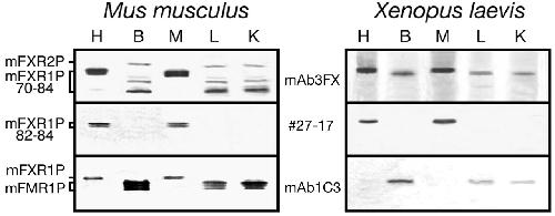 The RNA-binding protein fragile X-related 1 regulates somite formation in Xenopus laevis. , Huot ME, Bisson N, Davidovic L, Mazroui R, Labelle Y, Moss T , Khandjian EW., Mol Biol Cell. September 1, 2005; 16 (9): 4350-61.