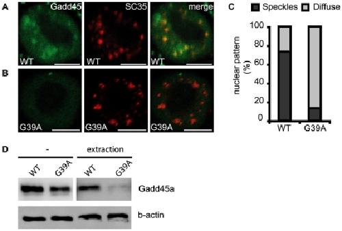 Gadd45a is an RNA binding protein and is localized in nuclear speckles. , Sytnikova YA, Kubarenko AV, Schäfer A, Weber AN, Niehrs C ., PLoS One. January 7, 2011; 6 (1): e14500.