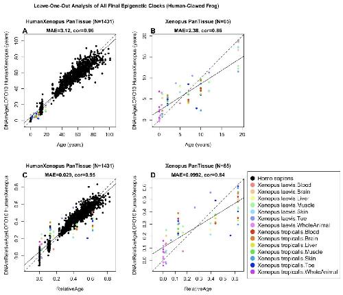 DNA methylation clocks for clawed frogs reveal evolutionary conservation of epigenetic aging. , Zoller JA, Parasyraki E, Lu AT, Haghani A, Niehrs C , Horvath S., Geroscience. February 4, 2023; 46 (1): 945-960.