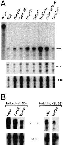 A Xenopus homebox gene defines dorsal- ventral domains in the developing brain. , Saha MS , Michel RB, Gulding KM, Grainger RM ., Development. May 1, 1993; 118 (1): 193-202.