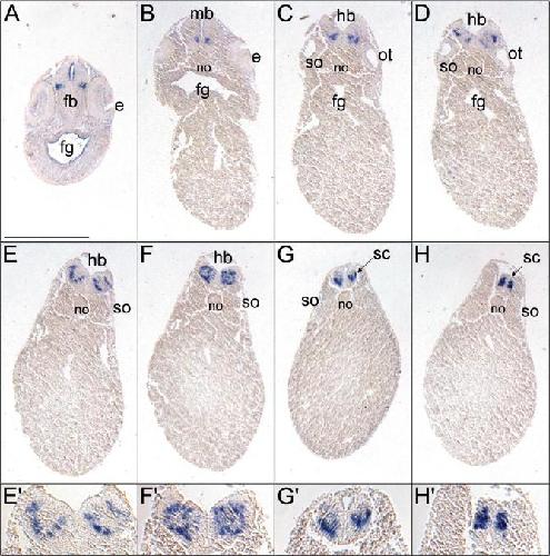 Dorsal- ventral patterning during neural induction in Xenopus: assessment of spinal cord regionalization with xHB9, a marker for the motor neuron region. , Saha MS , Miles RR, Grainger RM ., Dev Biol. July 15, 1997; 187 (2): 209-23.