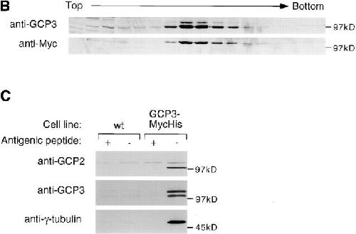 The mammalian gamma-tubulin complex contains homologues of the yeast spindle pole body components spc97p and spc98p. , Murphy SM, Urbani L, Stearns T ., J Cell Biol. May 4, 1998; 141 (3): 663-74.