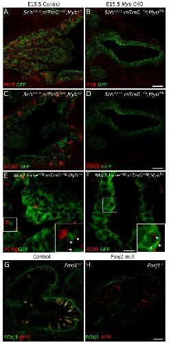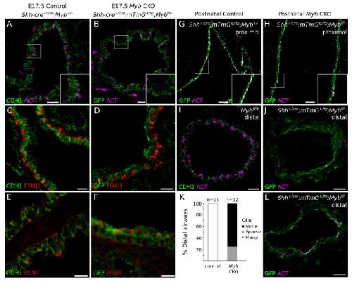 Myb promotes centriole amplification and later steps of the multiciliogenesis program. , Tan FE, Vladar EK, Ma L, Fuentealba LC, Hoh R, Espinoza FH, Axelrod JD, Alvarez-Buylla A, Stearns T , Kintner C , Krasnow MA., Development. October 1, 2013; 140 (20): 4277-86.
