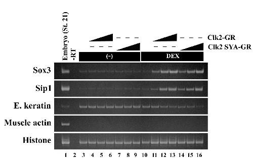 Cdc2-like kinase 2 (Clk2) promotes early neural development in Xenopus embryos. , Virgirinia RP, Jahan N, Okada M, Takebayashi-Suzuki K, Yoshida H, Nakamura M, Akao H, Yoshimoto Y, Fatchiyah F, Ueno N , Suzuki A ., Dev Growth Differ. August 1, 2019; 61 (6): 365-377.