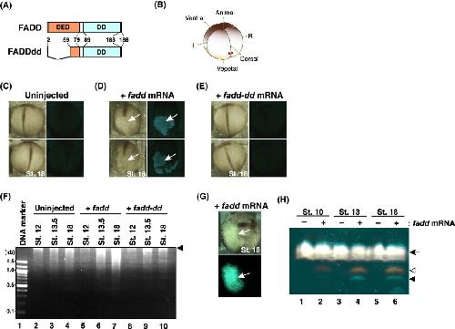 Multiple functions of FADD in apoptosis, NF-κB-related signaling, and heart development in Xenopus embryos. , Sakamaki K, Takagi C, Kitayama A, Kurata T, Yamamoto TS , Chiba K, Kominami K, Jung SK, Okawa K, Nozaki M, Kubota HY, Ueno N ., Genes Cells. November 1, 2012; 17 (11): 875-96.