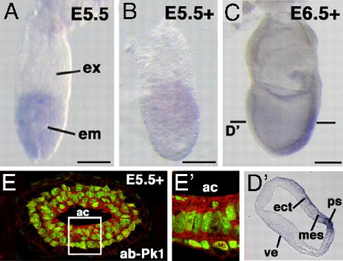 Mouse prickle1, the homolog of a PCP gene, is essential for epiblast apical-basal polarity. , Tao H, Suzuki M , Kiyonari H, Abe T, Sasaoka T, Ueno N ., Proc Natl Acad Sci U S A. August 25, 2009; 106 (34): 14426-31.