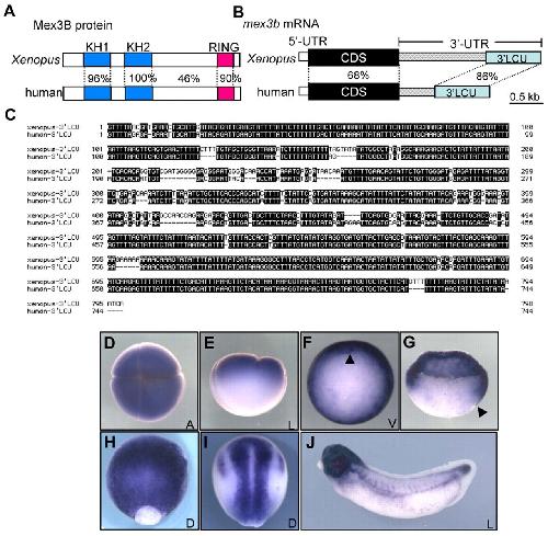 The RNA-binding protein Mex3b has a fine-tuning system for mRNA regulation in early Xenopus development. , Takada H, Kawana T, Ito Y, Kikuno RF, Mamada H, Araki T, Koga H, Asashima M , Taira M ., Development. July 1, 2009; 136 (14): 2413-22.