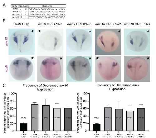 Disrupted ER membrane protein complex-mediated topogenesis drives congenital neural crest defects., Marquez J, Criscione J, Charney RM, Prasad MS, Hwang WY, Mis EK, García-Castro MI, Khokha MK., J Clin Invest. February 3, 2020; 130 (2): 813-826. |