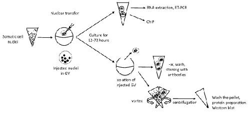 Mammalian nuclear transplantation to Germinal Vesicle stage Xenopus oocytes - a method for quantitative transcriptional reprogramming. , Halley-Stott RP, Pasque V, Astrand C, Miyamoto K , Simeoni I, Jullien J , Gurdon JB ., Methods. May 1, 2010; 51 (1): 56-65.