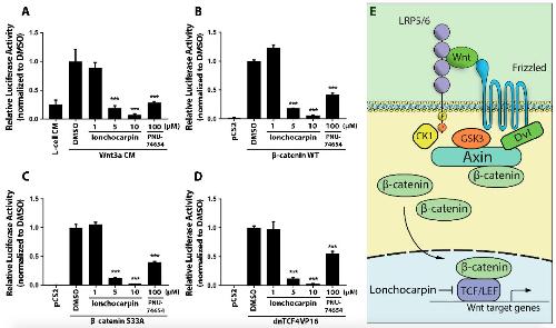 Derricin and derricidin inhibit Wnt/β-catenin signaling and suppress colon cancer cell growth in vitro., Fonseca BF, Predes D, Cerqueira DM, Reis AH, Amado NG, Cayres MC, Kuster RM, Oliveira FL, Mendes FA, Abreu JG., PLoS One. March 16, 2015; 10 (3): e0120919. |