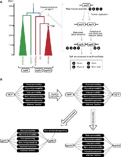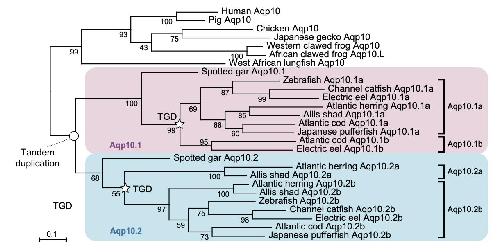 Functional divergence in solute permeability between ray-finned fish-specific paralogs of aqp10., Imaizumi G, Ushio K, Nishihara H, Braasch I, Watanabe E, Kumagai S, Furuta T, Matsuzaki K, Romero MF, Kato A, Nagashima A., Genome Biol Evol. January 5, 2024; 16 (1): |