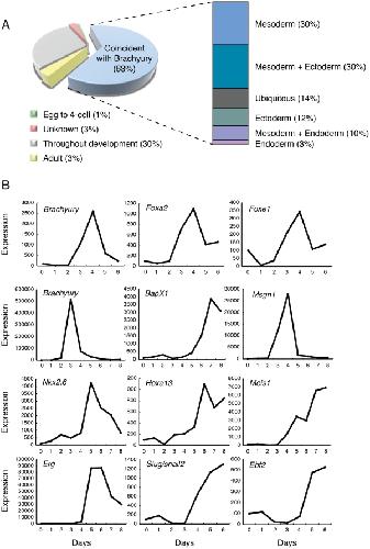 Genomic targets of Brachyury (T) in differentiating mouse embryonic stem cells. , Evans AL, Faial T, Gilchrist MJ , Down T, Vallier L, Pedersen RA, Wardle FC, Smith JC ., PLoS One. January 1, 2012; 7 (3): e33346.