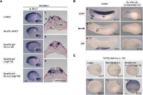 In vivo T-box transcription factor profiling reveals joint regulation of embryonic neuromesodermal bipotency. , Gentsch GE , Owens ND, Martin SR, Piccinelli P, Faial T, Trotter MW, Gilchrist MJ , Smith JC ., Cell Rep. September 26, 2013; 4 (6): 1185-96.