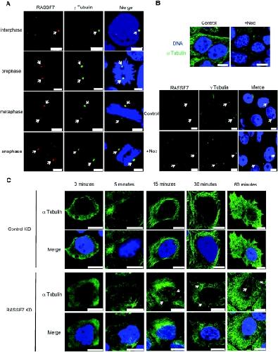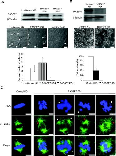 Human RASSF7 regulates the microtubule cytoskeleton and is required for spindle formation, Aurora B activation and chromosomal congression during mitosis. , Recino A, Sherwood V, Flaxman A, Cooper WN, Latif F, Ward A, Chalmers AD ., Biochem J. September 1, 2010; 430 (2): 207-13.