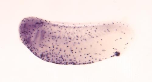 | anterior ventral blood island bone tissue cloaca egg intestine liver myeloid cell regenerating limb testis whole organism |