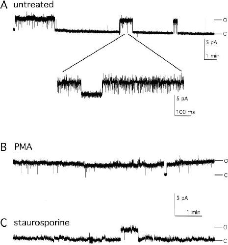Wilson, Modulation of a calcium-sensitive nonspecific cation channel by closely associated protein kinase and phosphatase activities. 1998, Pubmed