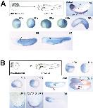 Figure 1. Ventral (A) and Dorsal (B) Marginal Zone Contributions to Primitive and Definitive Blood Compartments (A) Time course from stage 17 to stage 35 showing ï°-gal localization in VMZ injected embryos. Numbers at the top right corner in- dicate stage of development. 17a, dorsal view. 17b, 22b, and 26a, ventral views. 22a, 28, and 35, lateral views. Anterior is to the left in all cases. Black arrows indicate the position of the DLP.