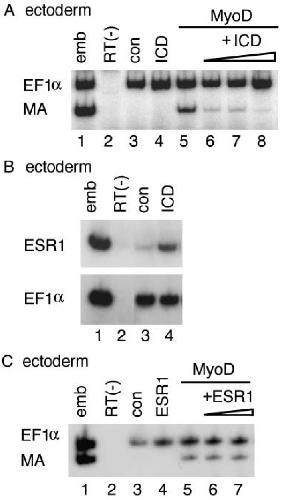 not (C). Amounts of RNA injected: (A) MyoD, 1 ng; ICD (lanes