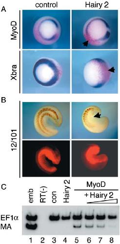 Red Dextran, 10 ng; (C) Hairy 2, 0.2 ng; MyoD, 1 ng; Hairy 2