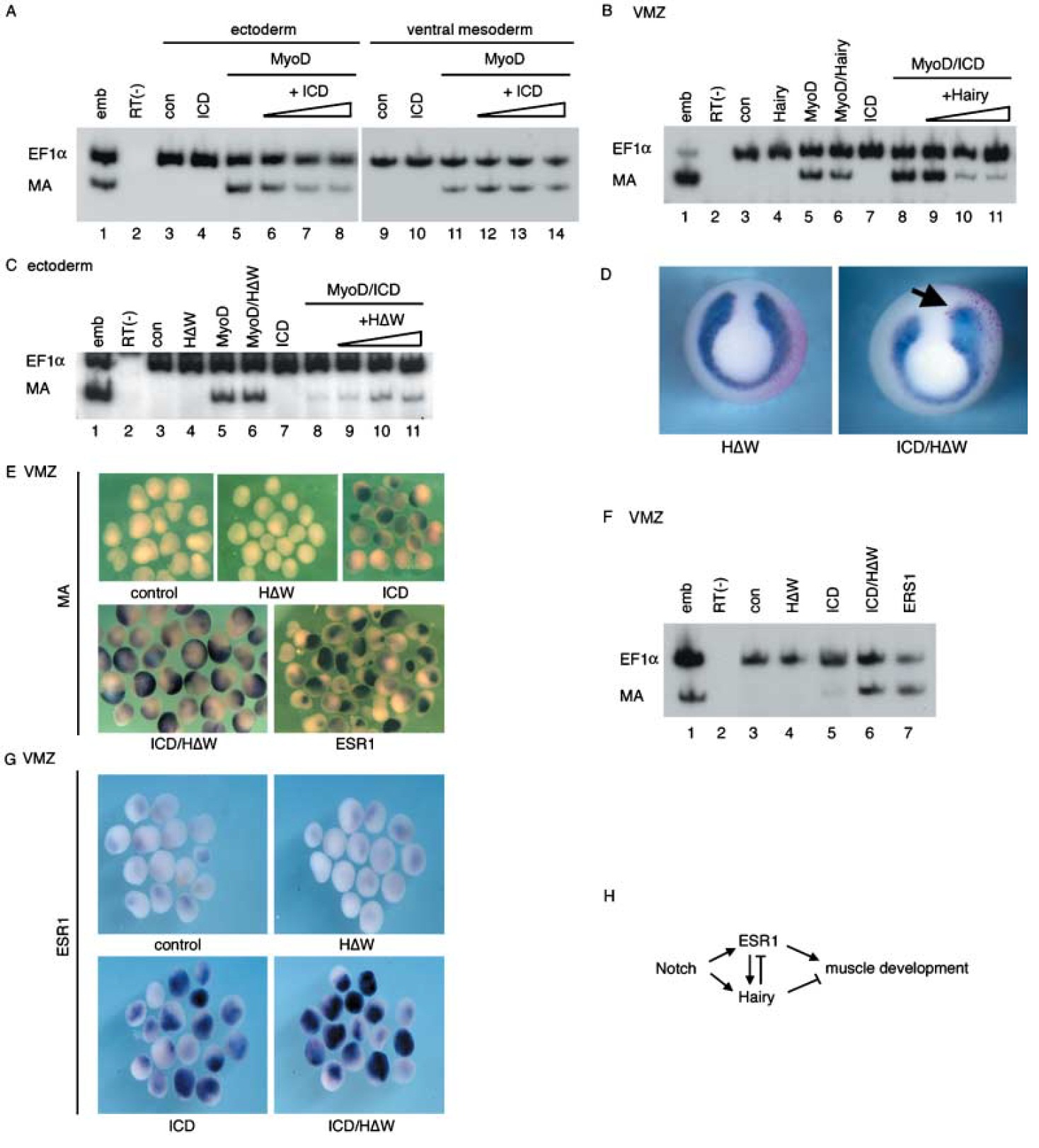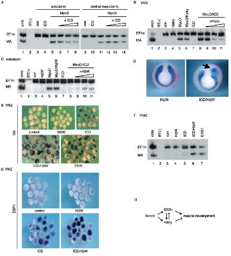 embryo. (E–F), Isolated VMZ were stained with MA (E) and ESR 1 probes (G), or processed with RT–PCR (F). (H), ESR 1 and Hairy,