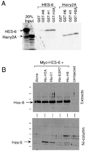 incubated with 35S-labeled Hes6 and Xhairy2A and washed; the