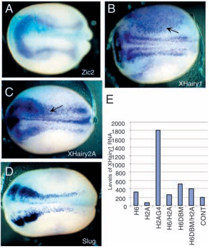 Xhairy2A and a DNA-binding mutant of Hes6 (2/0.5 ng,