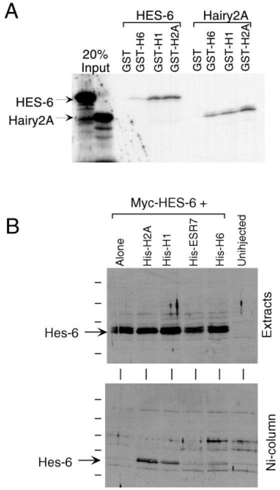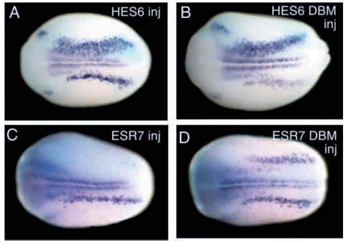 forms of Xhairy2A, Xhairy1, Esr7 or Hes6. Note that Hes6 binds to