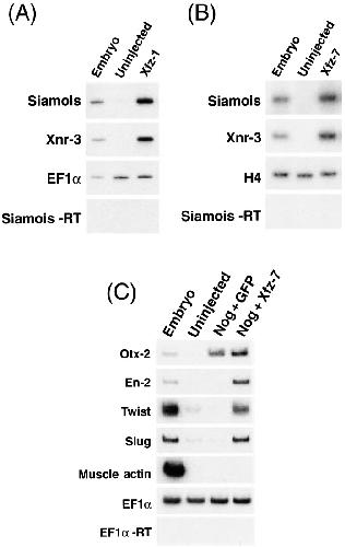 responsive genes Xnr-3 and siamois. Whole-embryo total