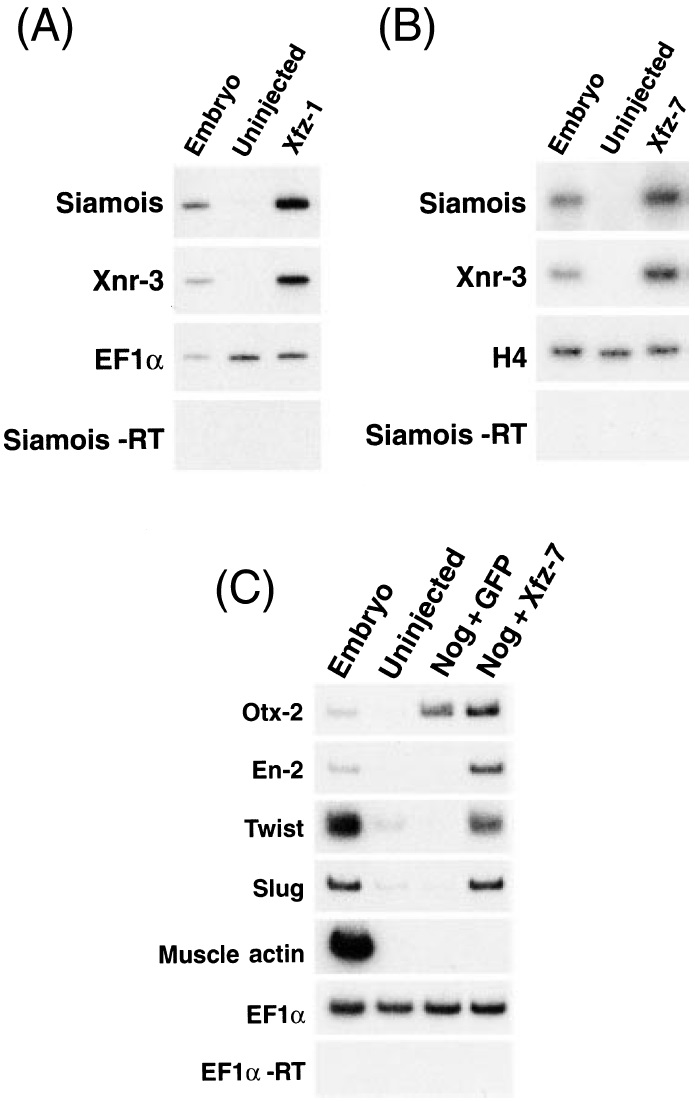 Xnr-3 and siamois. Histone H4 and elongation factor (EF)1a