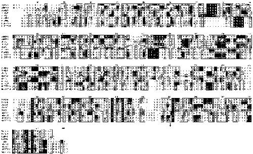 gray shading represents conservative amino acid substitutions, and medium gray indicates amino acid identity. Putative cleavage sites,