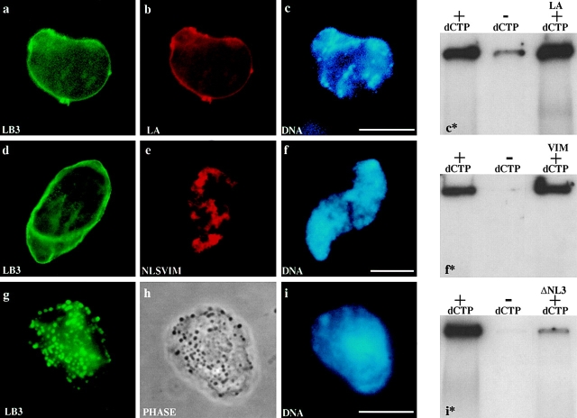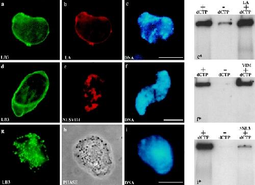Disruption of nuclear lamin organization blocks the elongation phase of DNA replication.